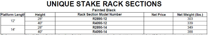 storage for up to 1,500 pounds of longer materials. Side and rear stakes close