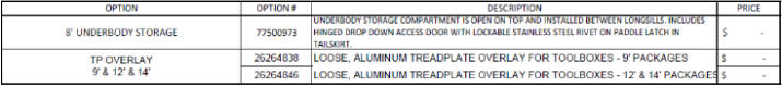 optional storage pack or underbody toolbox. If you want to upgrade your